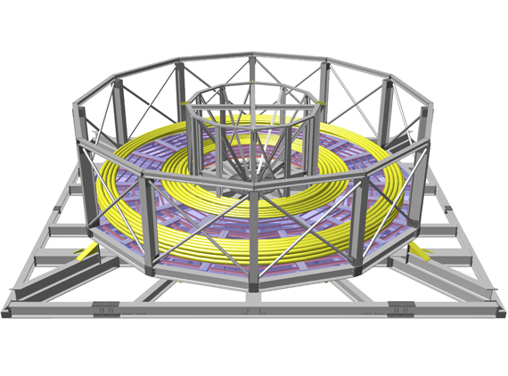| 3D BluePrint was assigned to design and develop an unique cable carousel of 1250 tone capacity which can be delivered by road, rail or vessel anywhere in the world and suitable for self assembly. System is self contained and can be assembled on the quayside or the vessel. Basket Carousel system comprises basket, Spider frame base, Gooseneck tower and 20ft containerised HPU. The basket is rotated by electrically driven under-rollers. The basket can be raised or lowered via jacking cylinders on the spider frame under-rollers. More information Click here |